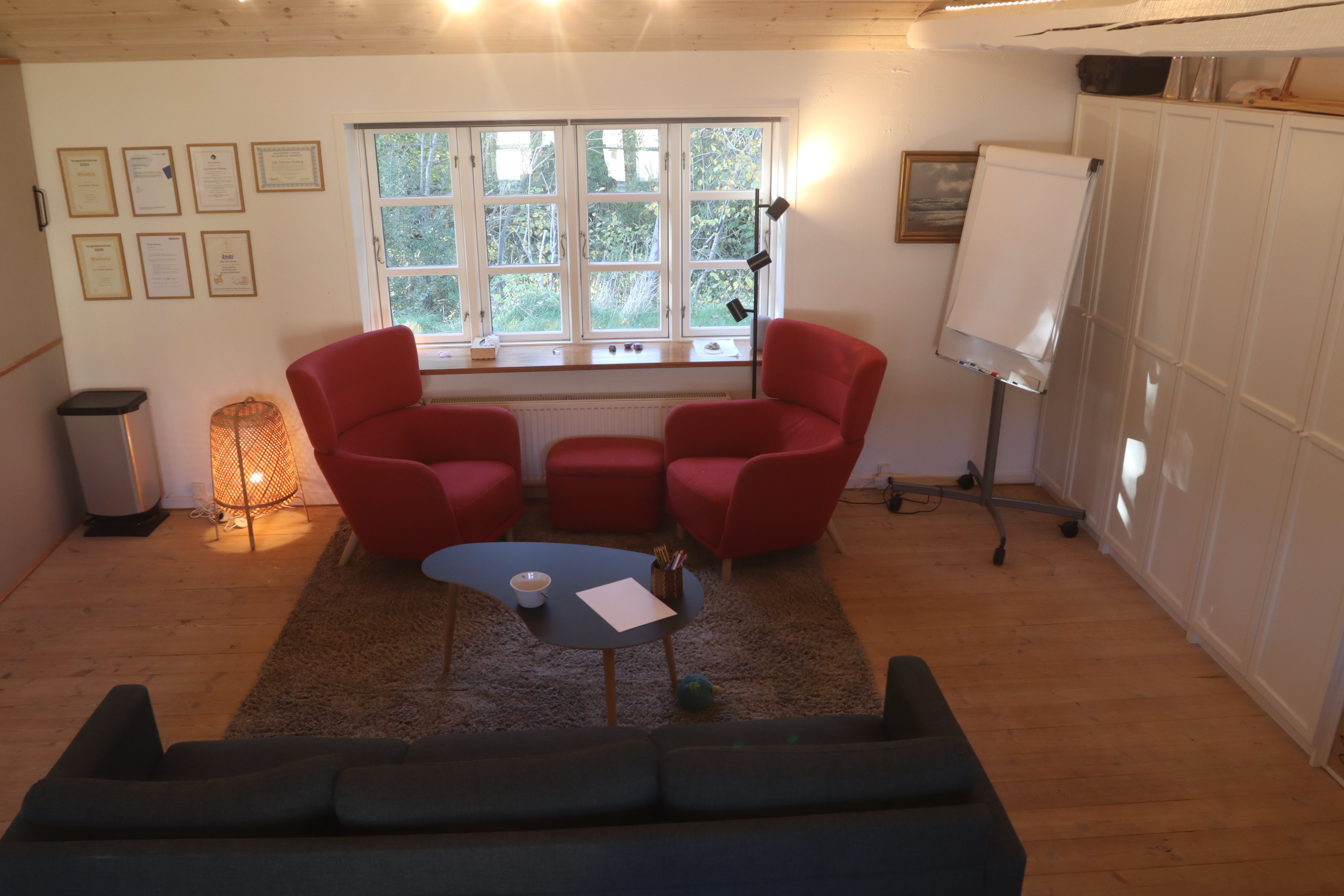Hos Lars møder du et varmt og indbydende terapilokale, hvor der både er plads til individuelle samtaler og hold.